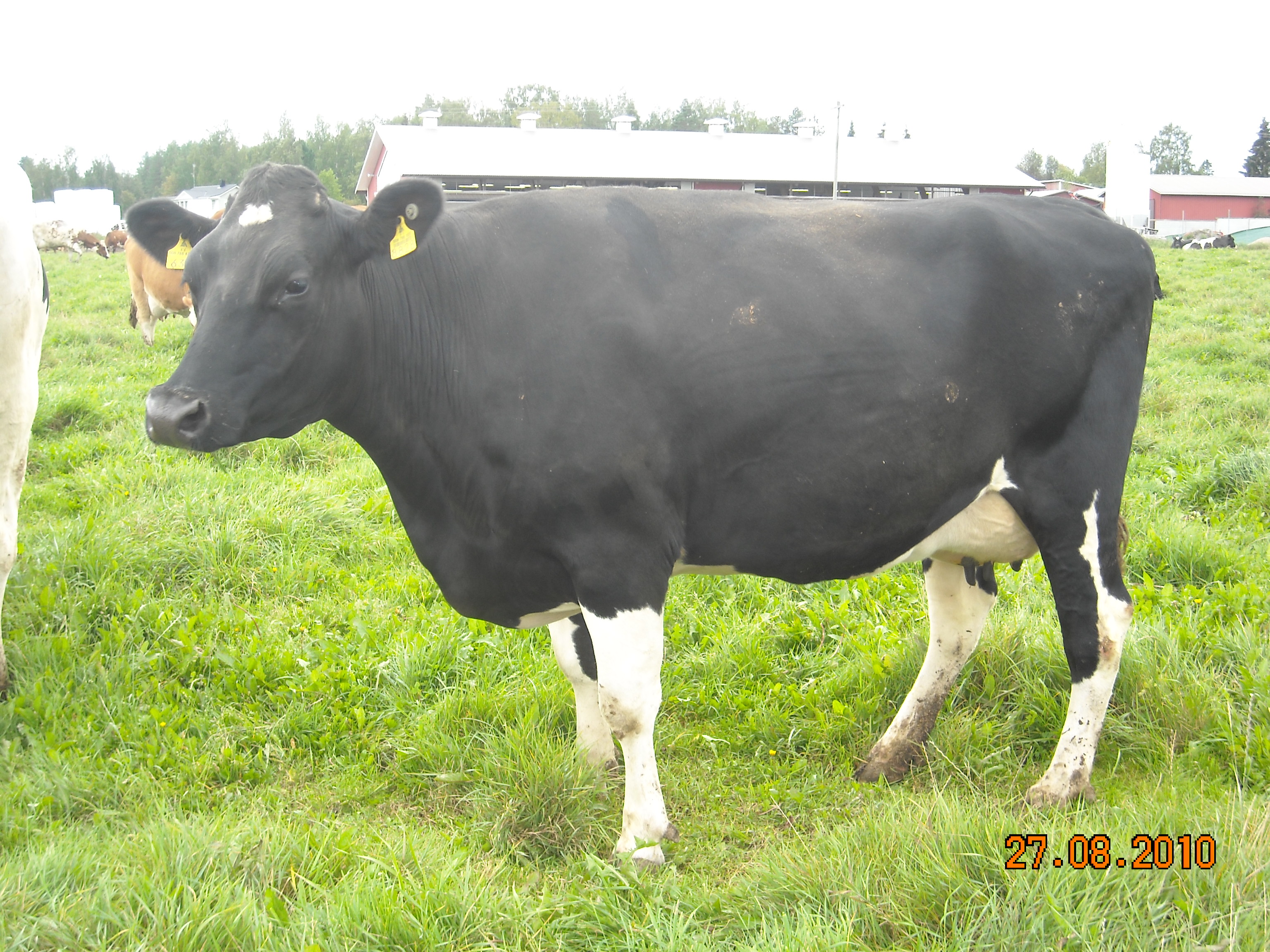 Odotetaan poikivan / Due to calve: Poikimiset/Calvings: 1. 4.8.2009 sonni / bull calf (Ranta-Seppälän Vain F 94265) Tuotokset/Production (305 days): 1. 6 747 (milk-kg) - 311 (fat-kg) - 4,61 - 264 (protein-kg) - 3,91 - 97 (somatic cell score) NTM 2010.8: +2 |