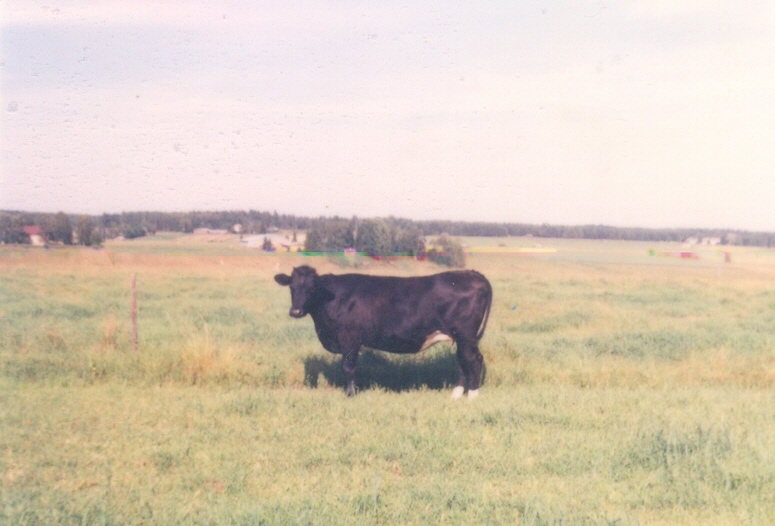 Unikko "Mustapekka" Kuvattu kesällä 1990 hiehona. Elinikäistuotos / Lifetime production: 34 871 m-kg, 1 830 fat-kg, 1 236 prot-kg 184508 R1 Syntynyt/Born: 20.7.1988 †1.11.1995 Emä/Dam: Loiste Isä/Sire: Immolan Lippa FFF 90860 Poikimiset/Calvings: 1. 1.9.1990 sonni / bullcalf 2. 5.8.1991 Aavepekka (Savolan Taavetti F 91310) 3. 25.9.1992 sonni / bullcalf 4. 12.11.1993 Huurrepekka (Haiskun Öre F 91529) 5. 21.11.1994 sonni / bullcalf Tuotokset/Production (305 days): 1. 6 514 (milk-kg) - 355 (fat-kg) - 5,45 - 237 (protein-kg) - 3,64 - 41 (somatic cell score) 2. 7 761 - 429 - 5,53 - 275 - 3,54 - 58 3. 8 442 - 408 - 4,83 - 289 - 3,42 - 114 4. 7 149 - 349 - 4,88 - 246 - 3,44 - 126 |