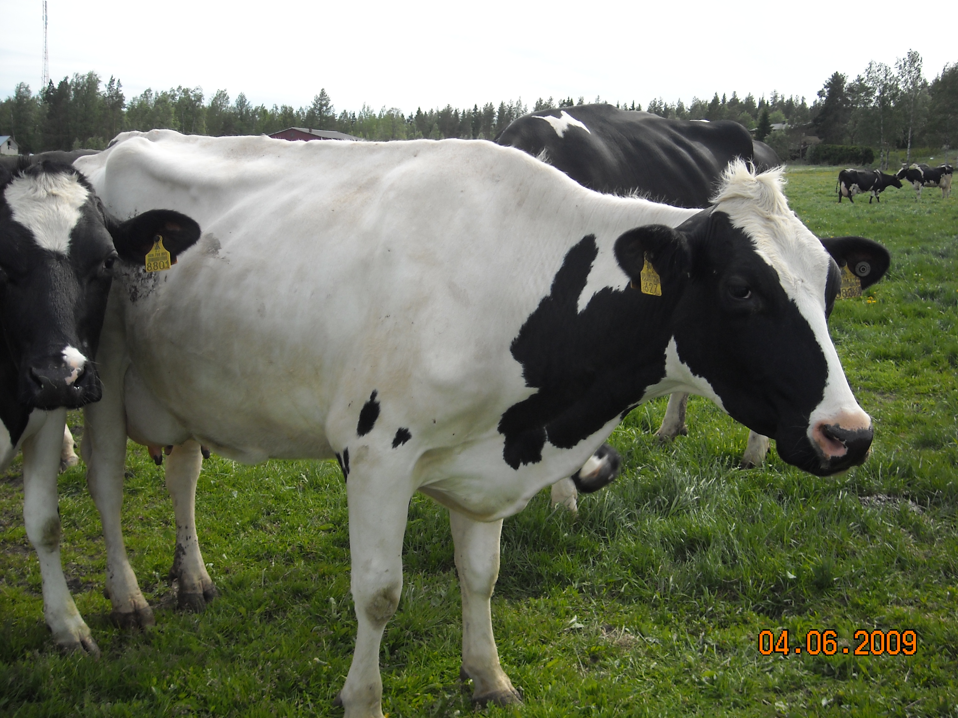 Odotetaan poikivan / Due to calve: Poikimiset / Calvings: 1. 18.2.2009 R-S Eukalyptus (Buckeye FFF 94134) † 2. 18.2.2010 Ranta-Seppälän Honka (Sanchez FFF 94916) 3. 22.3.2011 R-S Ikihonka (Sanchez FFF 94916) 4. 25.8.2012 sonni / bull calf (Jordan) Tuotokset / Production (305 days): 1. 7 994 (milk-kg) - 353 (fat-kg) - 4,42 - 280 (protein-kg) - 3,50 - 188 (somatic cell score) 2. 9 406 - 407 - 4,33 - 324 - 3,44 - 212 3. 12 701 - 622 - 4,90 - 453 - 3,57 - 223 Hollantilainen luokitus 17.6.2009: G78 (Runko 82, Lypsytyyppi 77, Utare 74, Jalat 83) |