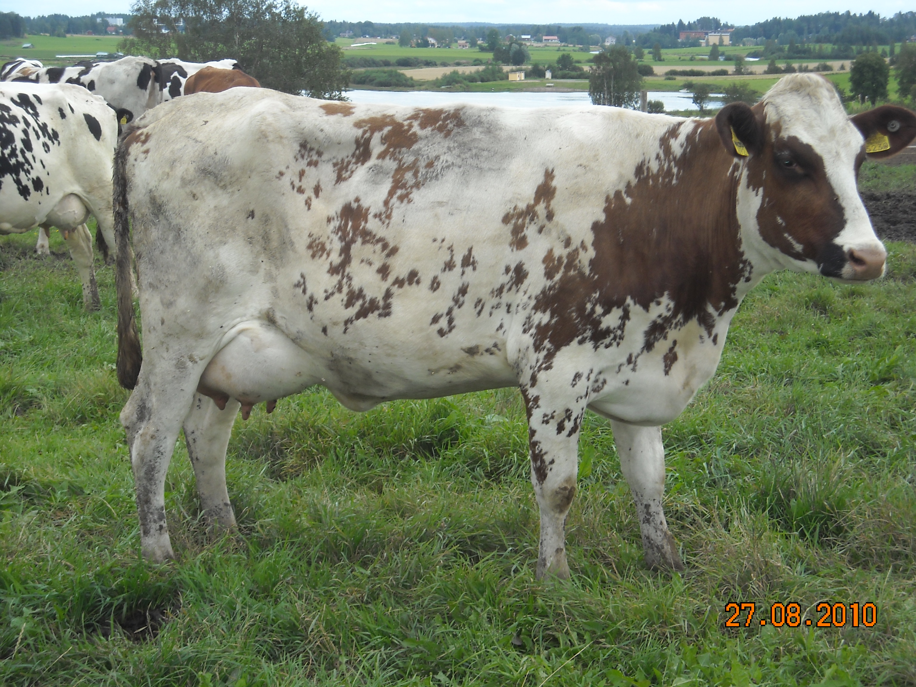 - Raita 64695 A Poikimiset / Calvings: 1. 23.8.2010 sonni / bull calf Hyökyaalto (Changue Tryst) 2. 22.12.2011 sonni / bull calf Iglu (Facet) 3. 17.3.2013 Ranta-Seppälän Kuohu (Terrace Bank Free Beer) Tuotokset / Production (305 days): 1. 8 640 (milk-kg) - 359 (fat-kg) - 4,16 - 288 (protein-kg) - 3,33 - 478 (somatic cell score) 2. 10 902 - 455 - 4,17 - 362- 3,32 - 90 AF-Class 11.10.2010: G 77 (75, 78, 76, 77), takakorkeus 138 cm |