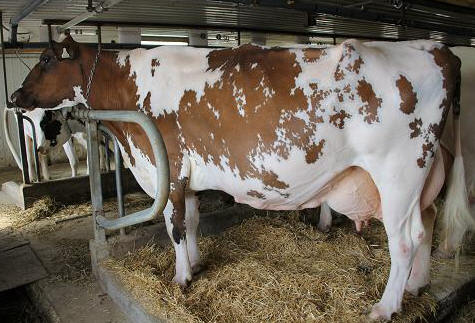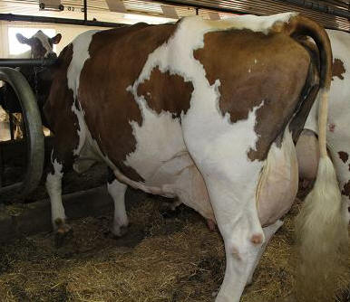 Tilan ensimmäinen 80-tonnari ja edellinen elinikäistuotos-ennätyslehmä (87 349 kg) Hissi kesällä 2002. Ranta-Seppälän Star VG86 R-S YoungStar GP83