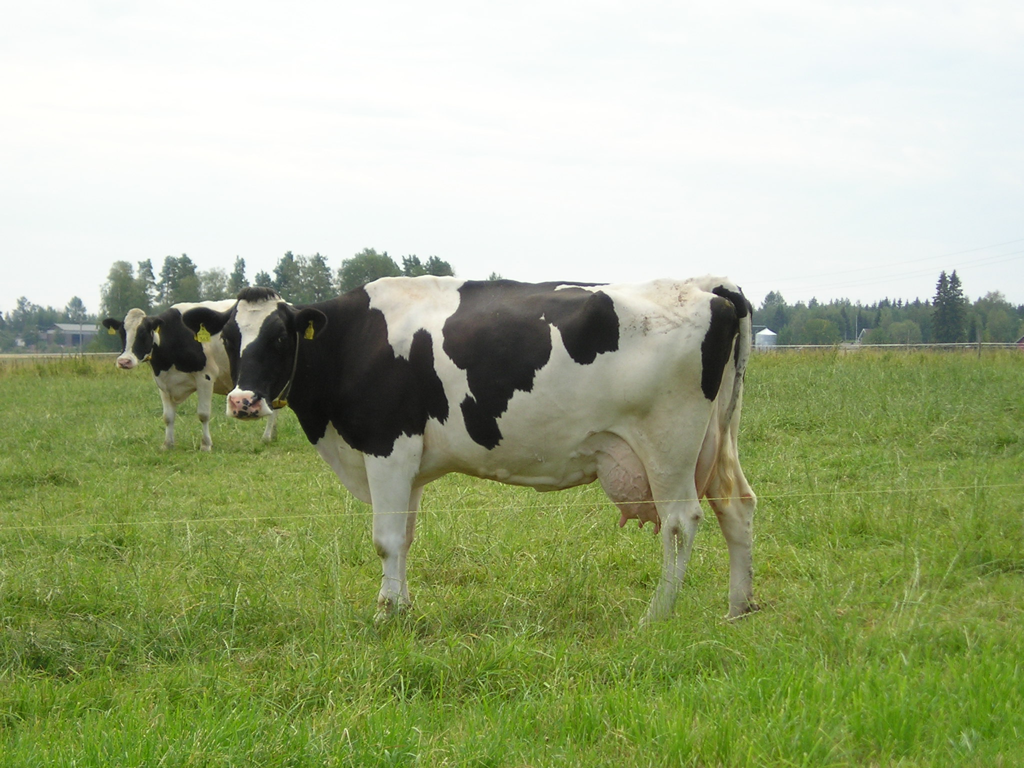 Kuvattu elokuussa 2006 4 kertaa poikineena. 88185 FFF Elinikäistuotos / Lifetime production: 61 703 m-kg, 2 491 fat-kg, 2 069 prot-kg Omegalla riittää myös korkeutta kuten puolisisarellaan Ompulla, mutta utare on paljon huonompi ja jalat vaivaavat. Luultiin ettei Omega ole tiine ja siksi sen ummessaolokausi jää nyt reiluun kuukauteen. Omega poiki etuajassa lehmävasikan Wildmanista ja poikiminen meni onneksi hyvin, mutta eläinlääkäri joutui käydä pistämässä kalkkia, kun Omega ei noussut ylös, mutta toipui sitten pian. Omegalla on kivoja tyttäriä ja useampi tyttärentytärkin kasvamassa. Luonteeltaan Omega on erittäin rauhallinen. Huonojen jalkojen takia Omegaa ei enää siemennetä. Syntynyt / Born: 29.9.2000 † 15.2.2009 Huonot jalat Emä / Dam: Manteli (Ollikkalan Usea FFF 91436) Isä / Sire: Etazon Addison FFF 92448 Poikimiset / Calvings: 1. 18.2.2003 sonni / bull calf Sigma (V Bojer FFF 92733) 2. 31.1.2004 Tessalonika (Björinge FFF 93227) 3. 6.2.2005 Upsilon (Nuuttilan Lirkko FFF 92355) 4. 25.1.2006 Ranta-Seppälän Fii (Ar-Joy Lenny FFF 92805) 5. 29.3.2007 sonni / bull calf Yrmy (Jenny-Lou Marshall Toystory FFF 94137) 6. 28.5.2008 Ranta-Seppälän Alfa (Ladys-Manor Wildman FFF 94242) Tuotokset / Production (305 days): 1. 8 153 (milk-kg) - 419 (fat-kg) - 5,14 - 278 (protein-kg) - 3,41 - 39 (somatic cell score) 2. 9 710 - 362 - 3,73 - 331 - 3,41 - 71 3. 11 452 - 428 - 3,74 - 372 - 3,25 - 34 4. 12 013 - 452 - 3,76 - 397 - 3,30 - 95 5. 9 509 - 380 - 4,00 - 3,06 - 3,22 - 190 takakorkeus 148 cm, maavara 51 cm AF-Class 11.6.2007: F 60 (85, 40, 50, 50) |