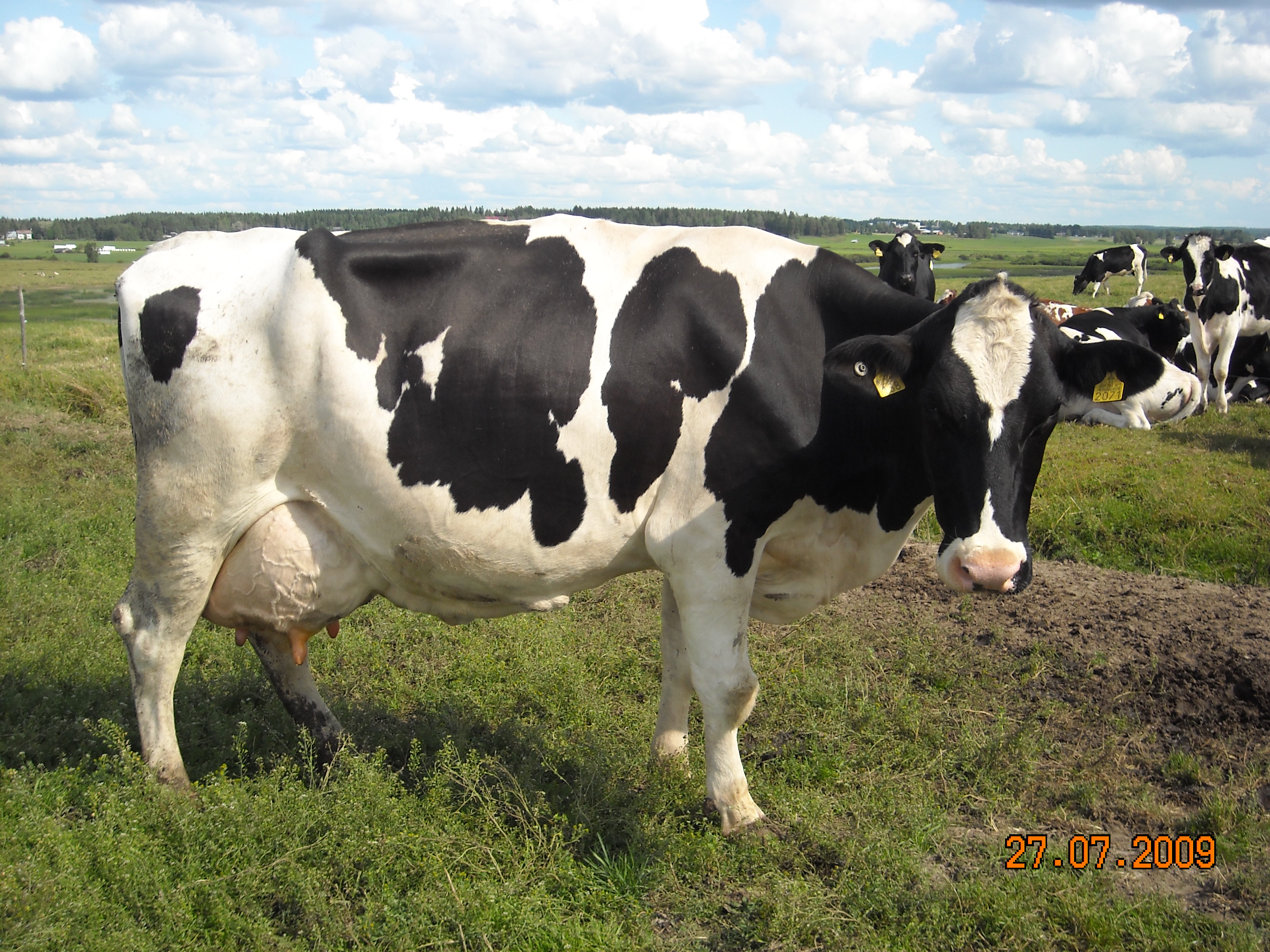 Odotetaan poikivan / Due to calve: 9.7.2012 blondi Poikimiset / Calvings: 1. 7.2.2007 sonni / bull calf Ärjy (Lucente FFF 93656) 2. 21.3.2008 sonni / bull calf Aapeli (Pursuit September Storm FFF 93802) 3. 3.5.2009 sonni / bull calf Eemeli (Pursuit September Storm FFF 93802) 4. 17.6.2010 kuollut lehmävasikka (Outbound FFF 95018) 5. 18.6.2011 alkiolehmä / embryo calf Kuortin Iso-Ingberg ET Tuotokset / Production (305 days): 1. 8 006 (milk-kg) - 348 (fat-kg) - 4,35 - 276 (protein-kg) - 3,45 - 45 (somatic cell score) 2. 9 641 - 407 - 4,22 - 328 - 3,40 - 55 3. 9 847 - 421 - 4,28 - 341 - 3,46 - 33 4. 9 993 - 429 - 4,29 - 344 - 3,44 - 35 5. 9 918 - 389 - 3,92 - 348 - 3,51 - 29 Hollantilainen luokitus (17.6.2009) : G79 (84, 85, 76, 80) AF-Class 11.6.2007: G 74 (83, 73, 78, 72) Elinikäistuotos toukokuussa 2012 / Lifetime production in May 2012: 48 287 kg