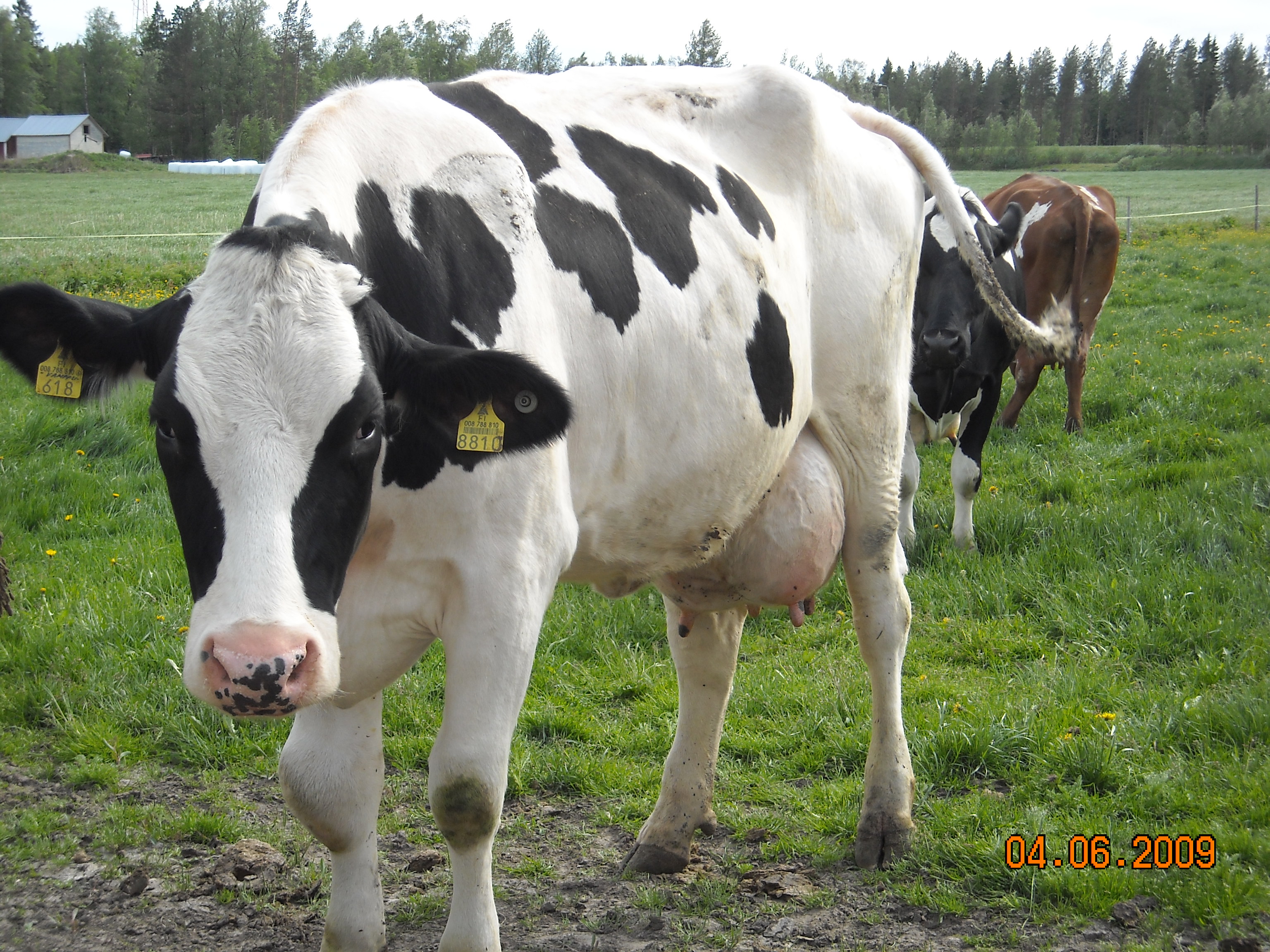 Kuvattu heinäkuussa 2007 ja kesäkuussa 2009. Syntynyt/Born: 6.7.2006 Emä/Dam: Temppu (Calbrett Hh Champion FFF 93256) Isä/Sire: V Elo FFF 93820 Odotetaan poikivan / Due to calve: Poikimiset/Calvings: 1. 28.1.2009 Ranta-Seppälän Emppu (Shottle FFF 93990) 2. 18.2.2010 Hemuli (Onyx, Blondi) Tuotokset/Production (305 days): 1. 6 806 (milk-kg) - 282 (fat-kg) - 4,14 - 242 (protein-kg) - 3,56 - 41 (somatic cell score) NTM 2009.11: +10 |