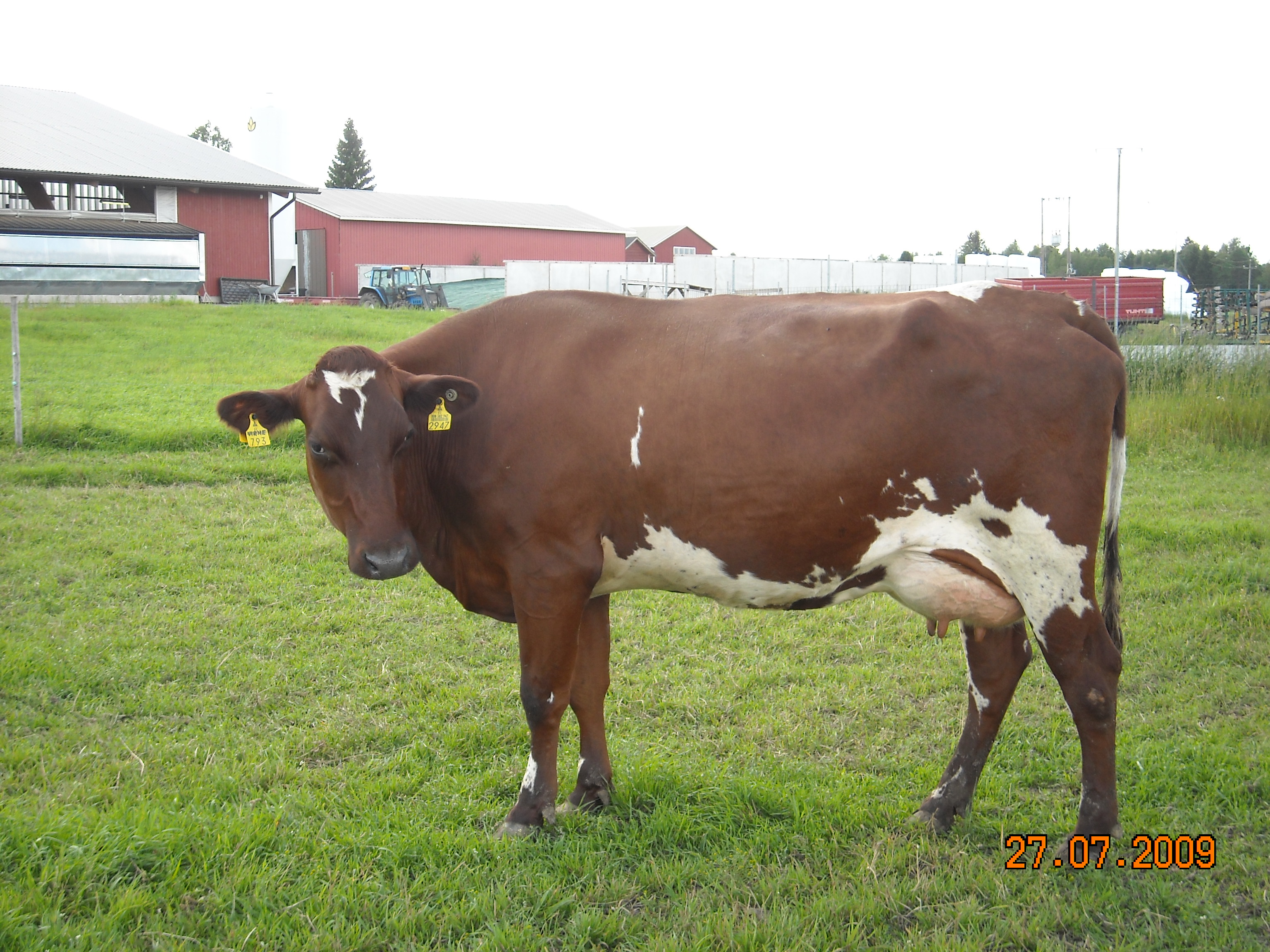 Poikimiset / Calvings: 1. 2.4.2009 Ranta-Seppälän Erhe (Orkko AAA 41531) Myyty eloon 2. 2.4.2010 sonni / bull calf Hairahdus (Tryst AAA 45189) 3. 23.3.2011 R-S Illuusio (Rannan Sandells) 4. 11.8.2012 sonni / bull calf (blondi) 5. 29.10.2013 sonni / bull calf Katumus (blondi) 6. 14.1.2015 Ranta-Seppälän Moka (Medalist) Tuotokset / Production (305 days): 1. 7 331 (milk-kg) - 385 (fat-kg) - 5,25 - 289 (protein-kg) - 3,94 - 29 (somatic cell score) 2. 7 211 - 355 - 4,92 - 284 - 3,94 - 58 3. 10 276 - 559 - 5,44 - 407 - 3,96 - 557 4. 10 480 - 564 - 5,38 - 391 - 3,73 - 74 4. 10 255 - 505 - 4,92 - 386 - 3,76 - 43 AF-Class 2.10.2009: G 74 (70, 70, 78, 75), takakorkeus 142 cm |